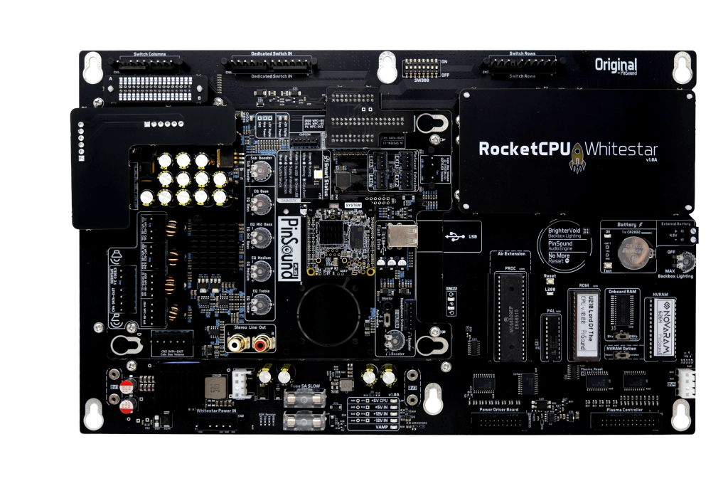 Some might find charm in meticulously recreating electronic boards true to past relics, flaws included. At PinSound, however, we’re all about leveraging modern technology to push the pinball experience further. Our RocketCPU boards are a testament to this philosophy, entirely redesigned to blend original logic with groundbreaking features. They’re built not just for nostalgia but for a genuine revolution in pinball user experience and maintenance.